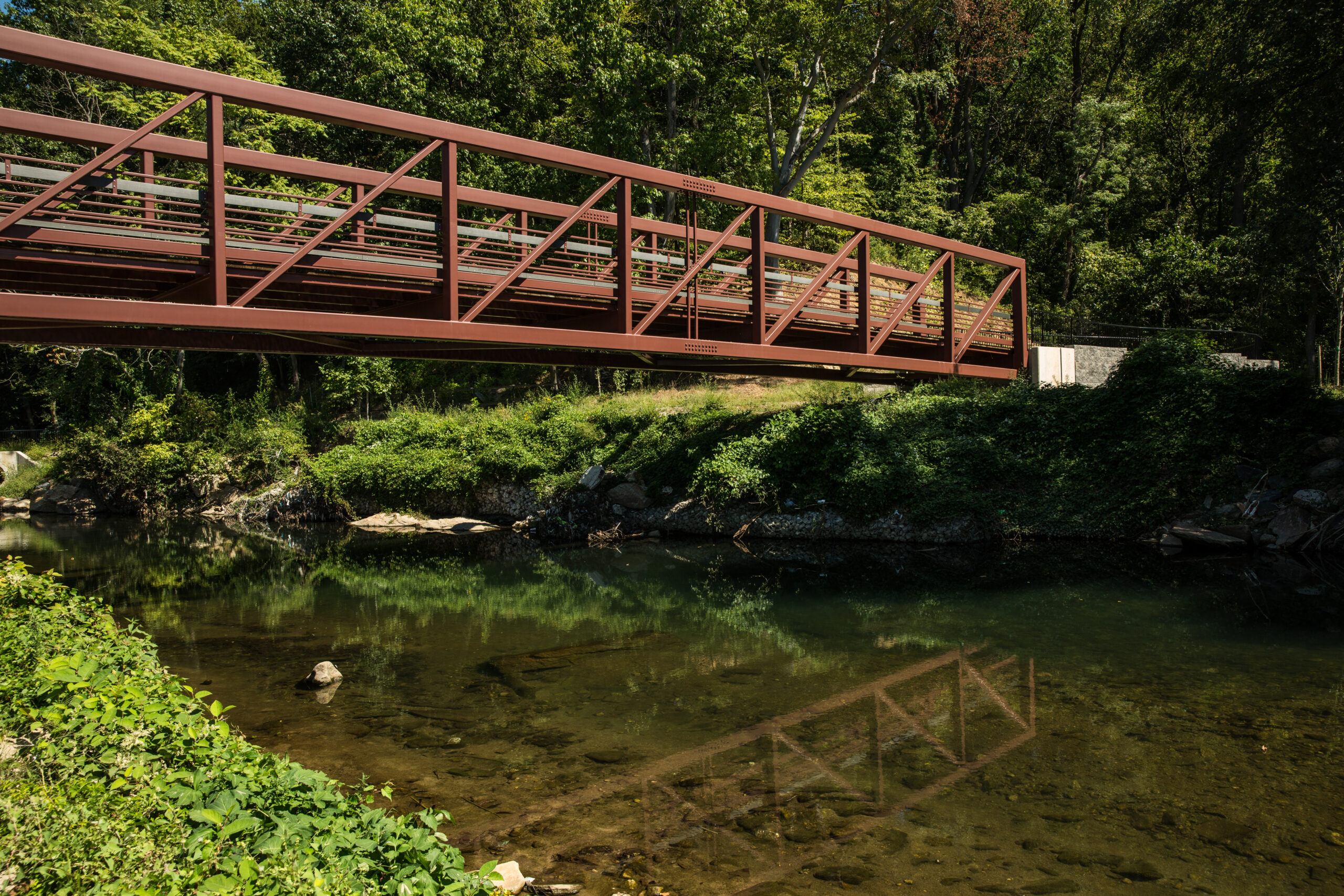 The Herring Run Greenway Phase 1 project included approximately 3445 tons of new 8′ wide asphalt trail, including overlay of existing trail, installation of a pre-fabricated metal bridge with timber bridges, 10 retaining walls, various drainage improvements, concrete pavement, pipe railing, stream restoration, signage, striping, traffic control, sediment control, seeding and landscaping.