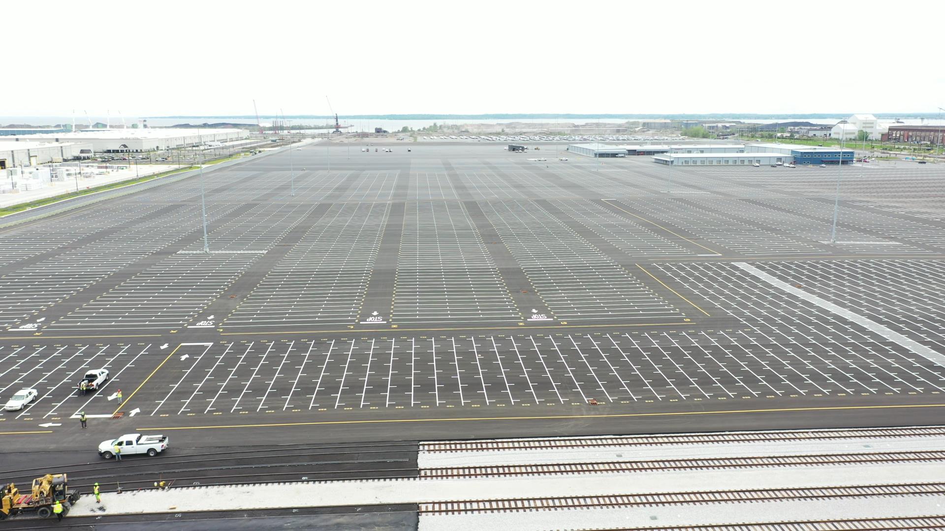 P. Flanigan and Sons, Inc. recently completed the largest HMA paving project in our 135+ year history – the 115 acre Volkswagen Port of Entry Facility at Tradepoint Atlantic. Flanigan produced and placed 108 acres (133,000 tons) of new HMA paving at this facility. The paving spanned a 7 month period, from October, 2019 to May, 2020. There were several days when the dedicated Flanigan paving crew placed over 2,200 tons in a shift.